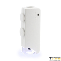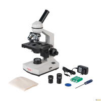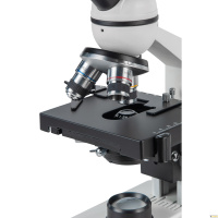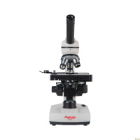 Монокуляр. Увеличение 40 - 640 крат. 3 ахроматических объектива и 2 окуляра.Трёхпозиционный револьвер. Встроенный светодиодный осветитель. Центрируемый конденсор Аббе 1,25. Двукоординатный предметный столик.