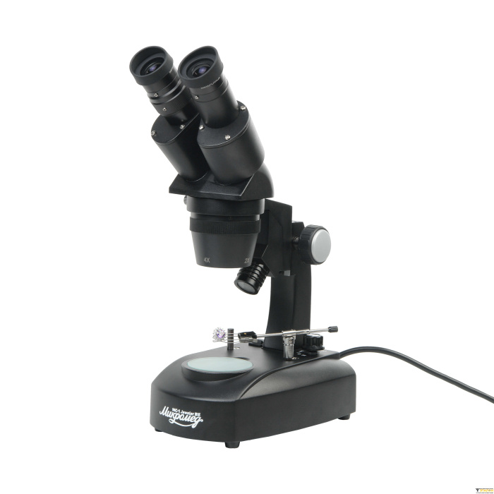 Микроскоп с переменным увеличением для геммологических исследований и ювелирной промышленности. Прямое изображение. Увеличение в базовой комплектации 20х и 40х. Рабочее расстояние 70 мм. Осветители проходящего и отраженного света.