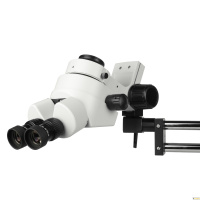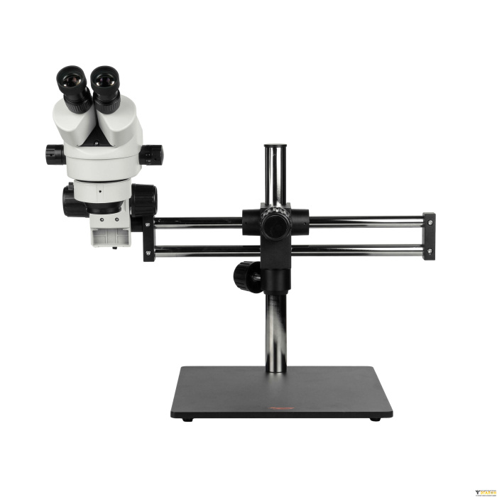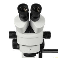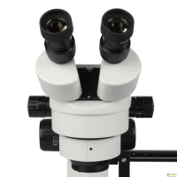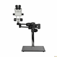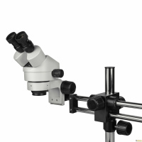 Стереоскопический микроскоп с переменным увеличением 7х-45х. Рабочее расстояние 100 мм. Специальный штатив с 4-мя степенями свободы и большим диапазоном регулировок положения.