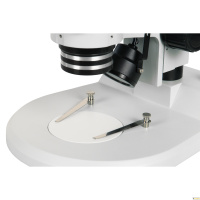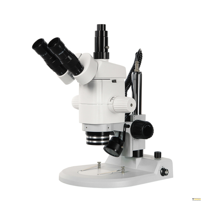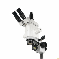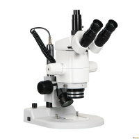 Стереоскопический параллельный микроскоп с переменным увеличением, построенный по схеме Аббе. Тринокулярная визуальная насадка. Рабочее расстояние 80 мм. Увеличение в базовой комплектации 6,2х - 50х (до 250х с доп. оптикой). Главный объектив - планахромат. Окуляры с исправленной дисторсией. Осветители проходящего и отраженного света на светодиодных матрицах bi-color.