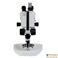 Микроскоп с переменным увеличением 10х - 40х. Рабочее расстояние 85 мм. Тринокулярная визуальная насадка. Подсветка от внешнего источника света.