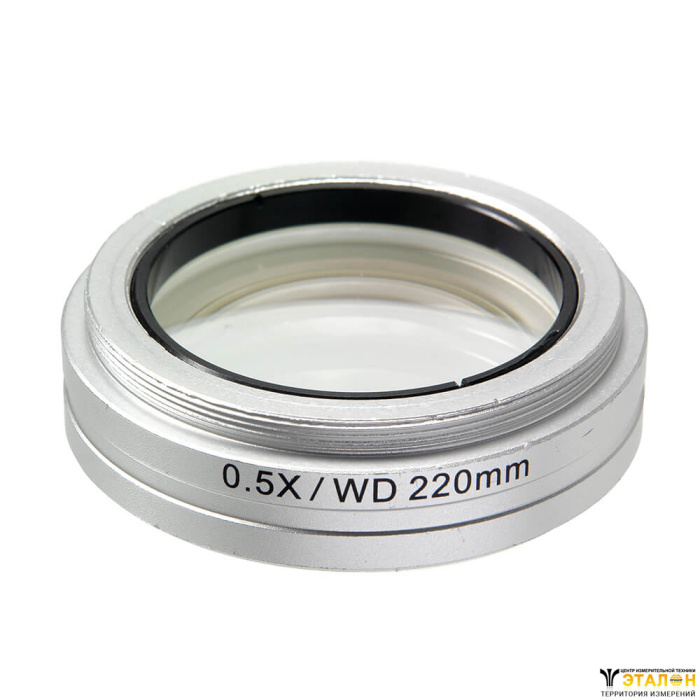 При помощи резьбового соединения надевается на объектив микроскопа МС-5-ZOOM LED. Изменяет рабочее расстояние, поле зрения и увеличение микроскопа