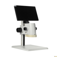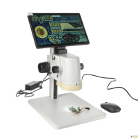 Цифровой микроскоп для исследований в отраженном свете с просмотром изображений на LCD мониторе 11.6”. Увеличение 17х – 110х. Рабочее расстояние 100 мм. Светодиодный кольцевой осветитель. Встроенное ПО. Доступны дополнительные насадки 0,5х, 2х и устройство 3D.