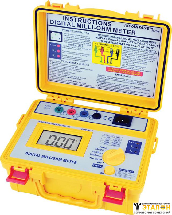 | Особенности | 4-х проводная схема измерения сопротивления. Предупреждение об опасном напряжении в цепи. Портативное, пыле- | и влагозащищенное исполнение. |