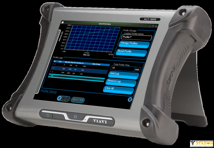 VIAVI ALT-8000 – это уникальный прибор для тестирования авиационных радиовысотомеров. Прибор позволяет выполнить тесты от Rx/Tx антенн самолёта до датчиков в кабине пилота, что даёт возможность сымитировать условия полёта и найти неполадки с оборудованием находясь на земле. Прибор весит 7,03 кг и имеет большой цветной сенсорный экран размером 12 дюймов, обеспечивающий удобство в работе. ALT-8000 работает в диапазоне 4,3 ГГц FMCW (частотно-модулированная непрерывная несущая частота).