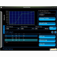 Профили: на странице профилей пользователь может создавать, сохранять, вызывать или удалять профили с присвоенными именами. Каждый профиль состоит из отдельных участков. Для каждого участка определяются начальная и конечная высота и скорость. Затем профиль можно выполнить, чтобы имитировать комплексный заход на посадку, включая выравнивание или подъем в воздух и вылет.