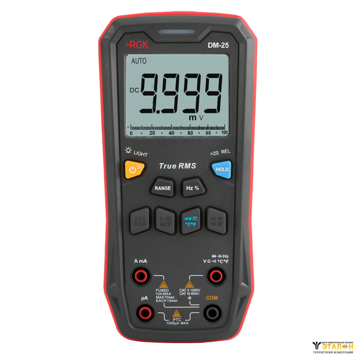 Цифровой мультиметр RGK DM-25 отвечает требованиям стандарта электробезопасности CAT III 600 В. Это означает, что его можно использовать для диагностики коммутационного оборудования, электродвигателей, систем освещения и др.