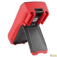 На задней поверхности устройства расположены петля для подвешивания и откидная подставка, которые позволяют установить измеритель так, чтобы специалисту было максимально удобно считывать показания, а руки были свободны для работы с щупами.