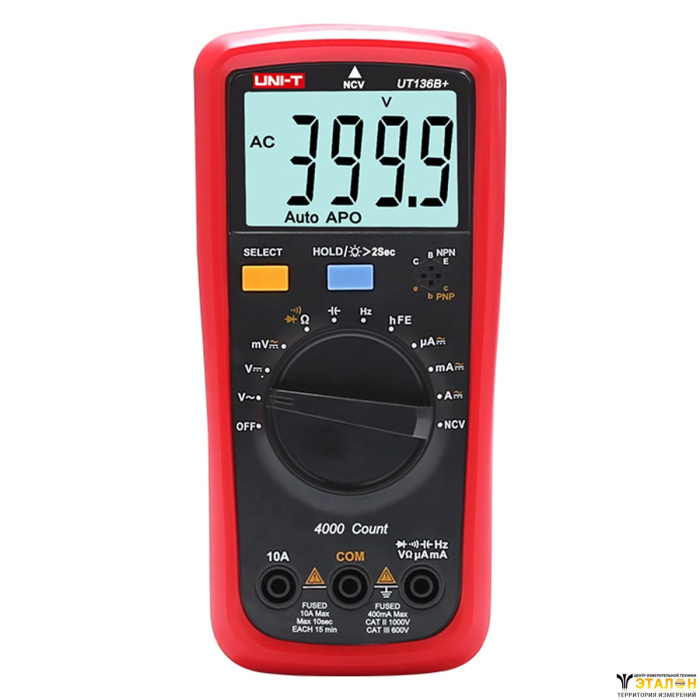 UNI-T UT136B+ измеряет постоянное и переменное напряжение и ток, сопротивление, емкость, частоту и проверяет диоды и целостность цепей. Он поддерживает функцию True RMS, что обеспечивает точное измерение переменного напряжения при несинусоидальной форме сигнала. Частота обновления показаний – 4 раза в секунду, что позволяет отслеживать динамические изменения. Дисплей с подсветкой и крупными цифрами обеспечивает отличную читаемость даже в темноте. Функция удержания показаний (HOLD) и автоматическое отключение экономят энергию и повышают удобство.