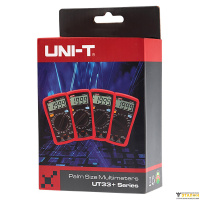 Портативный мультиметр UNI-T UT33C+ 13-0057 измеряет постоянное и переменное напряжение, постоянный ток, сопротивление и температуру, может проводить тестирование диодов и осуществлять прозвонку целостности цепи.