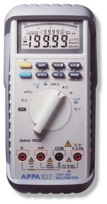 Мультиметр APPA 107N — профессиональный измерительный прибор с расширенной функциональностью. Выдает точные значения силы и напряжения тока, сопротивления, а также диагностирует целостность электроцепи. Вы получаете комбинацию возможностей нескольких устройств в одном компактном корпусе. Мультиметр APPA 107N — одна из лучших моделей в своем классе. Она надежна, мобильна, рассчитана на высокие эксплуатационные нагрузки, не требует сложной настройки и затратного обслуживания.