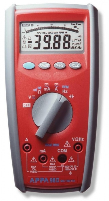 При работе с электричеством в производственных, лабораторных или полевых условиях необходимо позаботиться о безопасности и корректном отслеживании всех базовых параметров. Мультиметр APPA 98II и другие приборы из нашей номенклатуры отлично справятся с этой задачей. Они являются эталонами в своем классе благодаря минимальной погрешности, солидному рабочему ресурсу и большому межповерочному интервалу. Аппаратура точно и оперативно измеряет заданные показатели, что исключает критические ситуации. А благодаря надежному конструктивному исполнению ей не страшны механические повреждения из-за неосторожной эксплуатации.