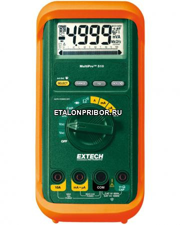 Extech MP510 - Профессиональный мультиметр серии MultiproTM. Высокопроизводительные цифровые мультиметры с автоматическим переключением диапазонов измерений и ПК интерфейсом RS-232 Высокая базовая точность измерений для напряжения постоянного тока – 0,08%. Широкий диапазон частот для напряжения переменного тока – с 40 Гц до 20 кГц. Компактная конструкция прибора с защитным футляром и водонепроницаемым чехлом.