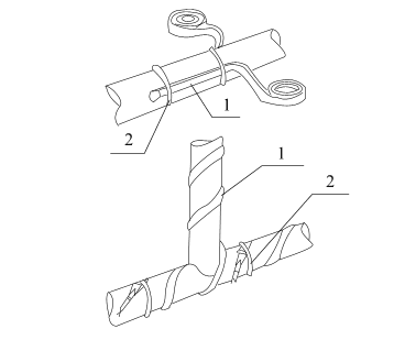 Монтаж нагревателей на трубах линейно и спирально: 1 - Нагреватель, 2 - Стеклолента