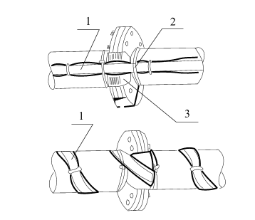 Монтаж нагревателей на фланцах трубопровода: 1 - Нагреватель, 2 - Стеклолента, 3 - Алюминиевая лента