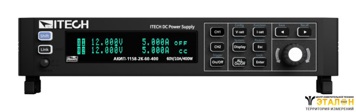| Особенности | Дискретность установки 1 мВ/ 1 мА. Возможность объединения источников серии АКИП-1158 в многоканальную систему питания |