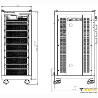 | Особенности | Максимальное напряжение в режиме постоянного тока ±990 В (реверс). Разрешение установки выходных параметров 0,01 В/0,01А. Диапазон частоты переменного напряжения 16 … 2400 Гц. (есть ограничение по напряжению). Регулировка фазы 0…360. Возможность работы в трехканальном режиме. Регулировка внутреннего сопротивления. Низкий коэффициент гармоник (0,5%). Одновременная индикация - напряжение, частота, ток, полная и активная мощность, коэффициент мощности. Функция диммера (регулировка скважности). Измерение и имитация перекоса фаз, помех, гармоник (до 50-й). Эффективность 88%. Сенсорный дисплей. Параллельное объединение источников питания (до 960 кВА). Воспроизведение тестовых последовательностей (200 шагов / 100 мкс … 42949 с). Питание от трехфазной сети. | Масса (кг) |