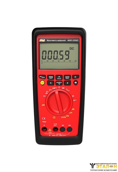 | Особенности | Встроенный таймер. Рабочий диапазон напряжения тока (ACV/ ACA) 15 Гц …10 кГц/ 10 кГц. Измерение температуры (т/ пара К-типа, J-типа) в диапазоне -200..+1370 °С. Вход «mA» для слаботочных измерений (0…600 мА), поддержка измерений пост./ переменного тока макс. до 6000А с помощью опц. преобразователя (в зав. от типа тр-ра тока). Регистрация МИН/ МАКС/ УСРЕД значений. Режим автоудержания показаний (AutoHOLD), относительные измерения (REL/Zero). Режим допускового контроля Годен/ Негоден (Go-NoGo). Выбор опорного сопротивления 1…9.999 Ом в функции измерения дБм уровня (зав. уставка 50 Ом). Измерение напряжения (Auto-V) на низкоимпедансном входе (LoZ). Встроенный фильтр нижних частот (LPF/ 1 кГц) для измерений напряжения и частоты в ЭУ с высоким уровнем электр. шумов и наведённых помех. Две области индикации (макс. «60.000»/ «2.500»), граф. линейная шкала, ск. измерений 10 изм/с подсветка ЖКИ. Класс исполнения IP50, рейтинг электробезопасности 1000В кат I/600В кат II. Опционально (доп. аксессуары) - USB IR-интерфейс (изолированный оптический порт), сетевой адаптер питания, трансформатор тока (1-10, 1-100, 1-1000). Питание 2 батареи 1,5В (тип АА/ LR6) |