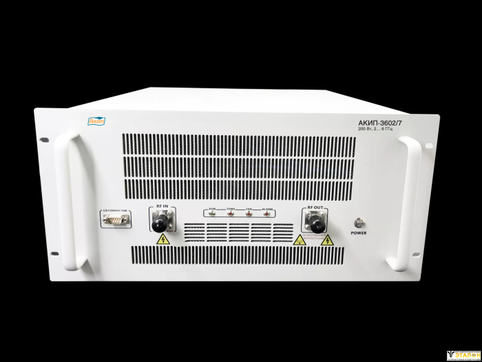 | Особенности | Широкополосный усилитель мощности, Минимальный входной уровень -10 дБм, Уровень 2-й гармоники -15 дБс, уровень 3-й гармоники -15 дБс, Неравномерность усиления ±1.5 дБ |