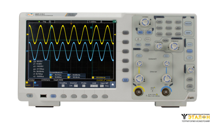 | Особенности | высокая скорость обновления экрана до 600.000 осц./сек. Интерполяция - sin x/х, линейная. Автоматические (до 40 параметров) и курсорные измерения. Математические функции, БПФ. Синхронизация и декодирование сигналов, UART/RS232, I2C, SPI, CAN. Встроенный генератор сигналов 50 МГц, мультиметр 4,5 разряда, частотомер 6 разрядов. |