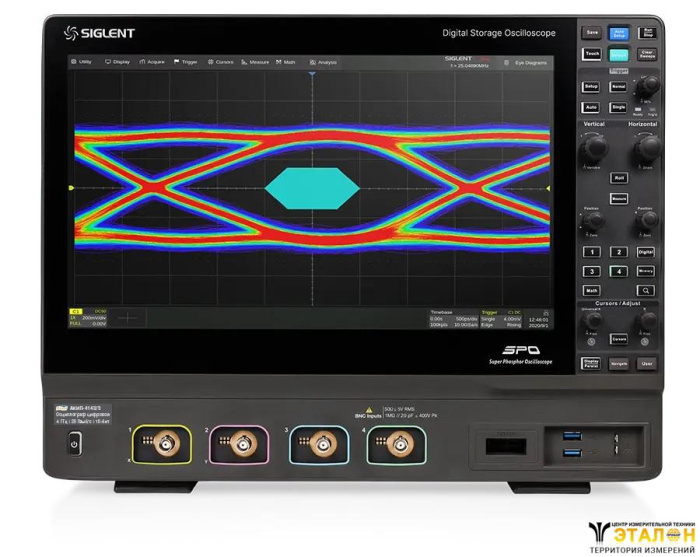 | Особенности | Осциллограф высокого разрешения, разрядность АЦП 10 бит. Высокая скорость обновления экрана до 1.000.000 осц./сек. Режим сегментированной памяти. Режим HISTORY. Интерполяция - Sin X/х, линейная. Автоматические (более 50-и параметров) и курсорные измерения. Математические функции, БФП (32 МБ). Режим «Поисковая машина/ Search» для поиска событий по условиям заданным пользователем. Синхронизация и декодирование сигналов, стандартно - I2C, SPI, UART/RS232, CAN, LIN, опционально - CAN FD, FlexRay, I2S, MIL-STD-1553B, SENT, Manchester, USB 2.0. Опция - логический анализатор 16 каналов. Опция - функциональный генератор до 50 МГц. Опция - измерение мощности и показателей качества электроэнергии (ПКЭ). Опция - построения глазковых диаграмм и анализ джиттера. |
