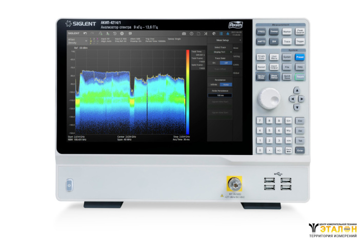 | Особенности | Расширенный набор измерений в базовой версии прибора. Внутренняя память 4 ГБ. Программные опции - предусилитель 20 дБ до 13,6 ГГц, анализ в реальном времени (полоса анализа 25 МГц или 40 МГц), фильтры ЭМС (200 Гц, 9 кГц, 120 кГц) и квазипиковый детектор, расширенный набор измерений (измерение мощности в канале и соотношение мощностей в смежных каналах, измерение мощности во временной области, измерение ширины занимаемой полосы частот), анализ сигналов с модуляцией AM/FM, ASK/FSK/PSK/MSK/QAM. Минимальная длительность от 7,2 мкс для гарантированного захвата сигналов 100% POI. |