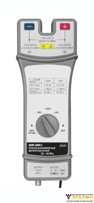 | Особенности | Коннектор BNC-типа, совместимость со всеми цифровыми осциллографами. |