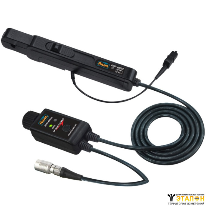 | Особенности | токовый пробник (тип «клещи») для измерения переменного и постоянного тока (AC/DC) без разрыва цепи. Подключение к осциллографам, скопметрам и другим приборам имеющим вход BNC. Длина соединительного кабеля 1,48 м (коннектор BNC). Питание от сетевого адаптера 6 В. Максимальное рабочее напряжение 600 В кат III. Масса 500 г. |