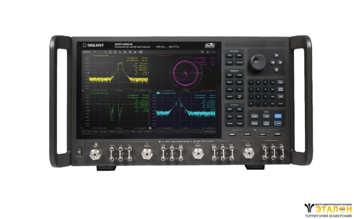 | Особенности | Векторный анализатор цепей (VNA) для проведения 4-портовых (S11, S21, S12, S22) измерений. Конфигурируемый измерительный блок (ВЧ-перемычки на передней панели). Измеряемые параметры - параметры рассеяния (S-параметры), дифференциальные измерения, измерения приемника, анализ параметров во временной области (опция), рефлектометр (опция) параметры пульсаций, импеданс, добавление или удаление кабелей и испытательных приспособлений. Поддержка различных видов калибровки – простая, расширенная, полная и TRL-калибровка. Поддержка инжекторов питания (Bias-Tees). Видео выход HDMI. Большой (диагональ 30,7 см) сенсорный экран. |