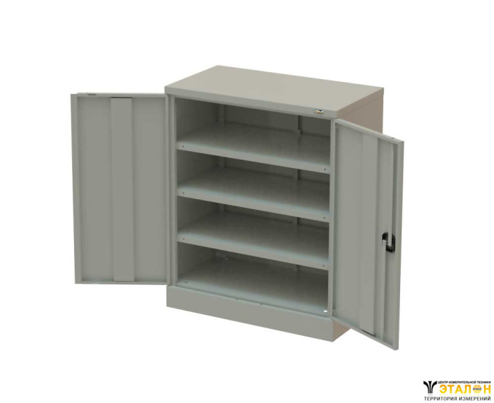 Металлический двухдверный шкаф с 3 полками предназначен для хранения документов в офисных или производственных помещениях