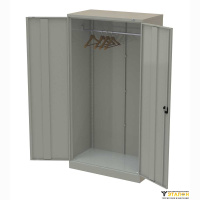 Металлический двухдверный шкаф предназначен для удобного размещения одежды в офисных или производственных помещениях