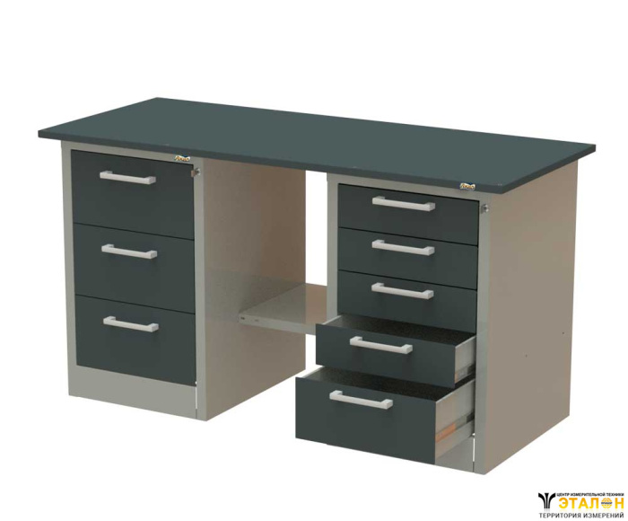 Верстак AKIP со столешницей типа 2, размеры 1500х630 мм с тумбой вариант D3 и тумбой вариант D5