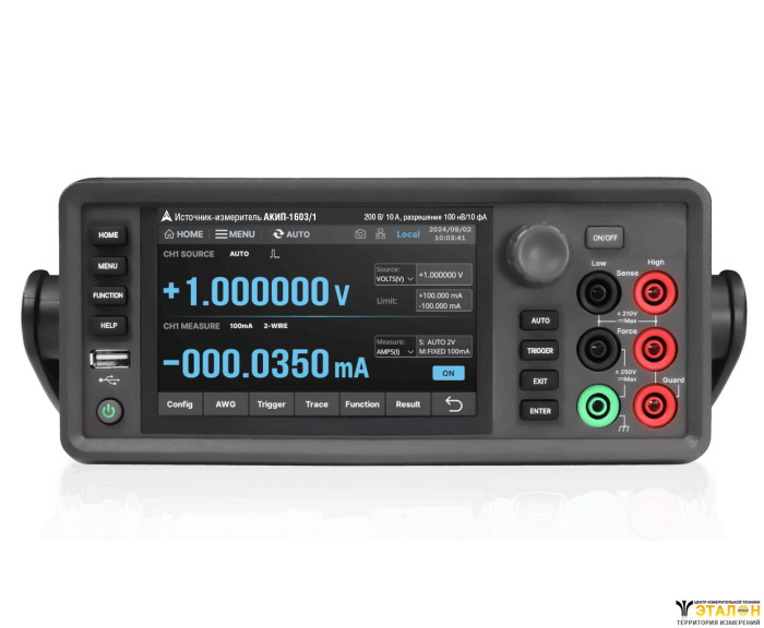 | Особенности | одноканальный 4-х квадрантный источник-измеритель (SMU) с работой в режимах источник напряжения, источник тока, измеритель напряжения/ тока (амперметр), измеритель сопротивления. Внутренняя память 100 К точек с метками времени. Импульсный режим, развертка/ Sweep, развертка по списку/List, математические вычисления, допусковый тест. Минимальная длительность импульса 50 мкс. Генерация сигналов произвольной формы, режим сканирования по списку (от 10 мкс). Поддержка 2 пр. и 4 пр. режимов измерения (Remote Sensing), выходной фильтр, 12 внешних портов запуска (6 входов, 6 выходов). Поддержка команд SCPI, функция веб-сервера. Сенсорный емкостный ЖКИ (TFT), диаг. 12 см, 480x272 точек, макс. формат индикации «21.000.00» |