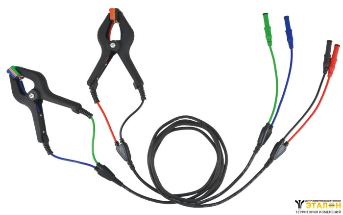 | Особенности | 4-х проводный измерительный кабель (KELVIN) с усиленными зажимами "крокодил" и коннекторами типа "банан" 4 мм («прямой», в изоляции), общая длина 1,23 м. кабель, диам. 5 мм (1 м/ силикон) + соед. провода 3,5 мм «крокодил» (0,1 м/ ПВХ) + соед. провода «банан»(0,13 см/ ПВХ). Контактная площадка круглой формы ( медь), макс. раскрыв зажима 40 мм. Измерительный кабель предназначен для использования с миллиомметрами и микроомметрами (4136mo/4137mo, 6237DLROи др.), а также с измерителями низкоомных цепей (вх. гнезда 4 мм/«мама») и режимом измерения большими испытательными токами |