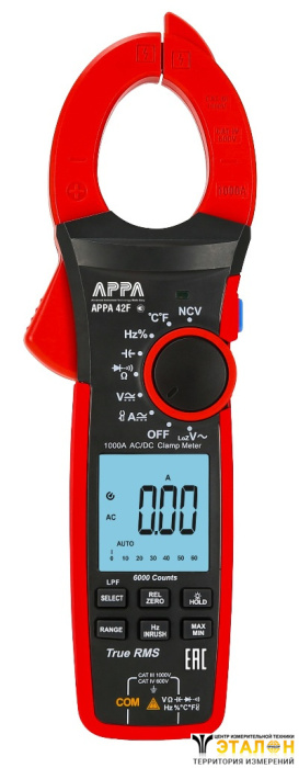 | Измеряет | ACA, DCA, ACV, DCV, Сопротивление, Частота, Температура, Коэффициент заполнения импульсов, Емкость, Пусковой ток, Прозвон цепи, Проверка диодов |
