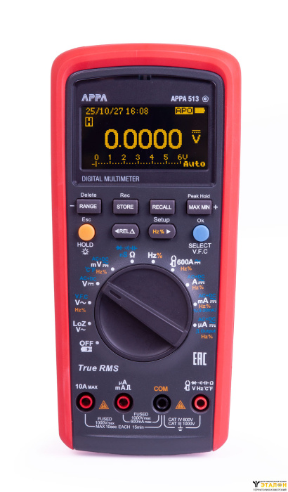 | Особенности | Генератор прямоугольных сигналов до 48 кГц. Регистратор до 9999. Регистрация МИН/ МАКС/ AVG (с метками времени), пиковых значений PEAK. Режим относительных значений (REL). Режим удержания показаний (HOLD). Установка даты и времени. Измерение с преобразователем Напряжение-Частота. (VFC). Низкоомный вход LoZ. Бесконтактный детектор напряжения (NCV). Измерение силы переменного тока с внешними клещами преобразователем до 600 А. OLED-дисплей с подсветкой (макс. «60000», 5 изм/с). | Питание от литий ионного аккумулятора. Класс защиты IP67. Соответствие категории электробезопасности 1000 В Кат III, 600 В Кат IV |