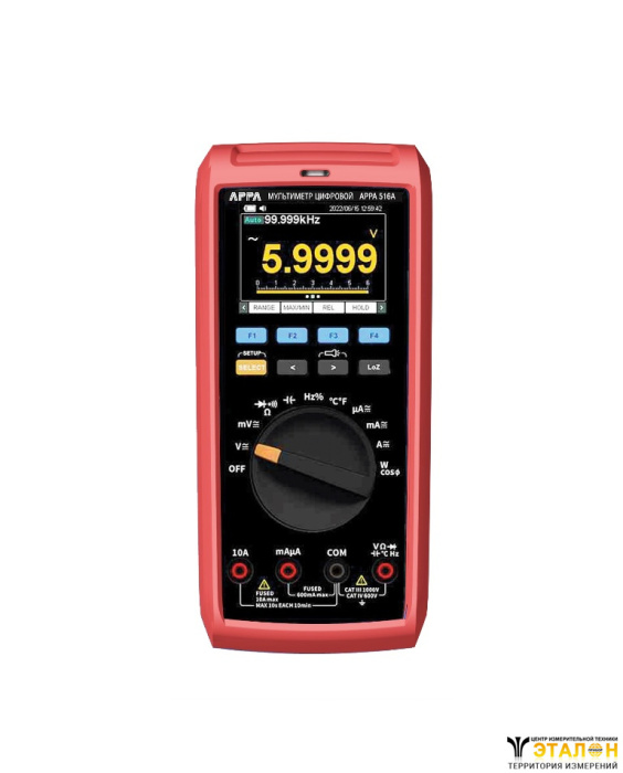 | Особенности | Измерение электрической мощности (до 2,5 кВт), рабочий диапазон частот 40 Гц …1 кГц (ACV/ ACA). Измерение температуры в диапазоне -50…+1000 °С. Вход «mA» для слаботочных измерений (0…600 мА). Регистрация МИН/ МАКС/ AVG (с метками времени), пиковых значений (Peak от 1 мс). Относительные измерения REL, фильтр НЧ (LPF), функция LoZ. Режим измерения петли тока (LOOP/ диапазон «4-20 мА», индикация в %). Внутренний таймер, часы, календарь. Режим удержания показаний (HOLD). Цветной ЖКИ с подсветкой (макс. «60.000», 3 изм./с), граф. линейная шкала (61 элемент). Категория защиты 1000В кат III/600В кат IV. Питание 3 батареи 1,5В (тип ААА). Встроенный магнитный держатель, с/д фонарик подсветки. Сигнализация об ошибке коммутации изм. проводов на входе (Mis-Lead Alert) |