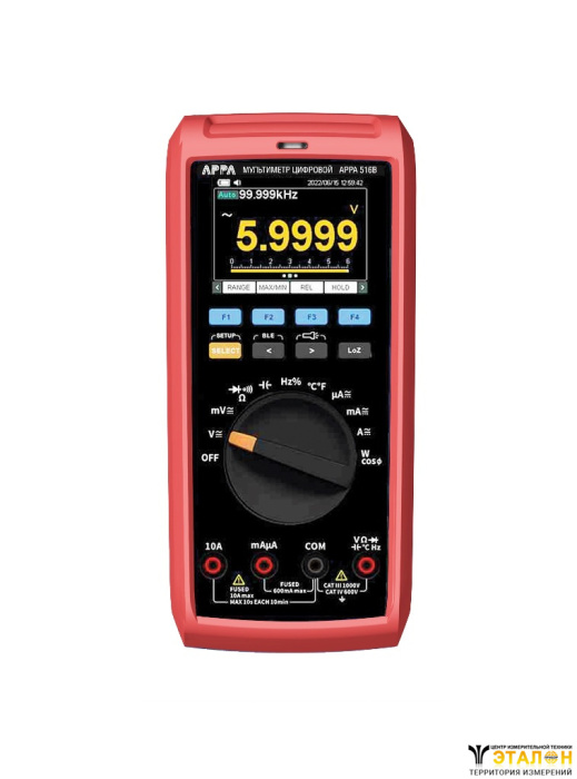 | APPA 516BИзмеряет | DCV, ACV, DCA, ACA, Мощность (кВт, ВА), Сопротивление, Прозвон цепи, Температура, Частота, Ёмкость, Проверка диодов |