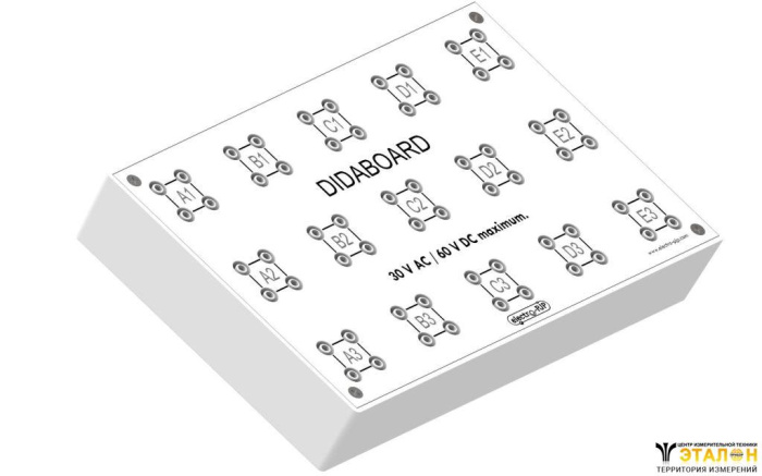 Панель прямоугольной формы из пластика, имеющая 60 гнездовых клемм для штекеров 4 мм типа «банан» (3 линии - №1/ №2/ №3, в каждой 5 блоков гнезд – А/ В/ С/ D/ E).