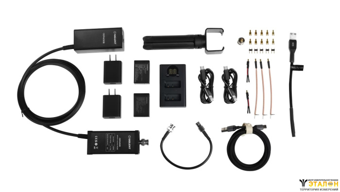 | Опции | Дополнительные аттенюаторы (5×, 10×, 20×, 100×, 200×, 10000×). Удлинительные кабели, зарядное устройство. Наборы адаптеров (SSMB, 2,54 мм, 5,08 мм) |