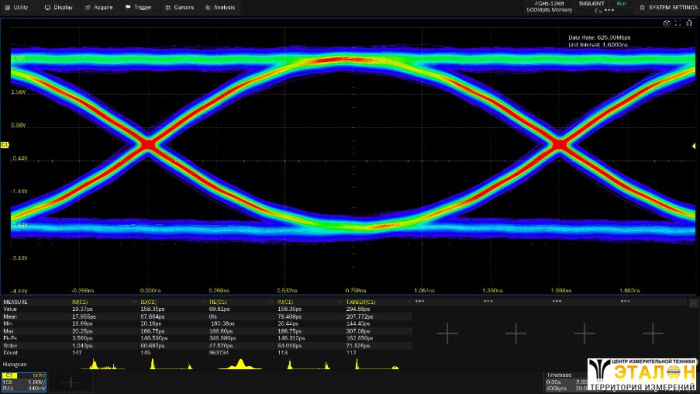 Программная опция построения глазковых диаграмм и анализ джиттера.