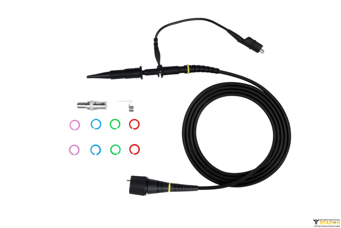 | Особенности | Пассивный пробник с полосой пропускания 1,5 ГГц, предназначен для работы с осциллографами в режиме входного сопротивления 50 Ом. Длина кабеля 1,3 м. Контактная площадка для автоматического детектирования пробника. |