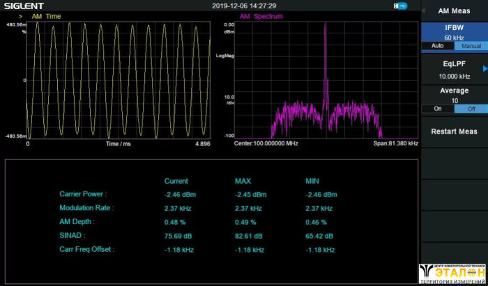 Программная опция анализа параметров модуляции АМ, ЧМ, ФМ. Для анализаторов спектра серии АКИП-4214