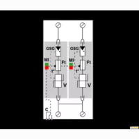 Используется в качестве первичной защиты однофазной или 3-х фазной сети в главном электрощите. В основу УЗИП заложен высокоэнергетический варистор с терморазмыкателем и индикатором состояния, чтобы соответствовать стандартам. Многополюсные УЗИП DAC50VG предназначены для защиты однофазной, трёхфазной или трёхфазной+нейтраль сети переменного тока. Они иногда устанавливаются вместе с N/PE УЗИП.