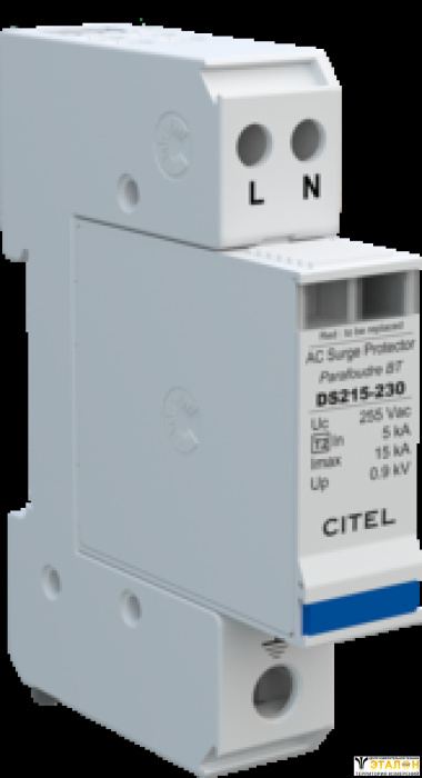 Компактный УЗИП DS215 тип 2 применяется для защиты однофазных сетей в главном щите. Общий или общий/дифференцильный режим защиты.