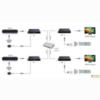 LKV383Matrix обеспечивает передачу HDMI сигнала до 120 м по одному кабелю cat5/6 или коаксиальному кабелю от передатчика к приемнику. Сигнал передается в цифровой компрессированной форме, с использованием семейства протоколов TCP/IP v4.