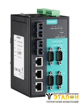 4-портовый преобразователь RS-232/422/485 в Ethernet cо встроенным Ethernet-коммутатором (с портами многомодового оптоволокна)