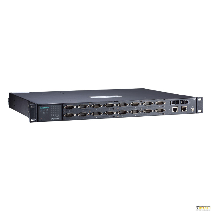 16-портовый преобразователь RS-232/422/485 в Ethernet cо встроенным Ethernet-коммутатором (2 порта 10/100BaseT(X) - RJ45, 2 порта 100BaseF(X) - многомод, SC), питание 110/220 В перем./пост.