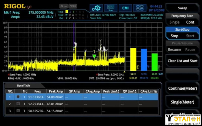 Приложение для измерения электромагнитных помех RIGOL RSA3000E-EMI для анализаторов спектра реального времени серии RSA3000E представляет собой комплексное решение для обеспечения предварительного тестирования на соответствия требованиям электромагнитных помех. Оно включает сканирование диапазона, поиск пиков, задание предельных линий, возможность использование несколько одновременных детекторов CISPR и т.д.