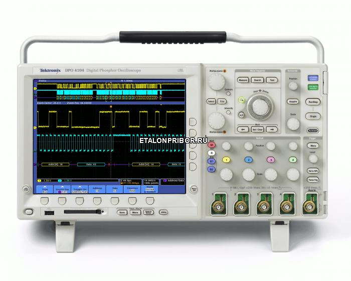 DPO4104B - осциллограф цифровой – высокоточная модель с широкой сферой использования (от ремонтных мастерских и учебных заведений до научно-исследовательских лабораторий высокого класса, плюс купить прибор может и обычный радиолюбитель, увлеченный изучением колебательных процессов). DPO4104B - осциллограф цифровой обладает безупречными техническими характеристиками, которые полностью оправдывают его цену, и отличается удобством эксплуатации, что обусловлено небольшими габаритами и массой. Корпус устойчив к механическим нагрузкам и легко переносит интенсивную эксплуатацию. Прибор измеряет заданные параметры в реальном времени и выводит информацию на специальный экран. Это эталонная техника, соответствующая самым строгим стандартам.